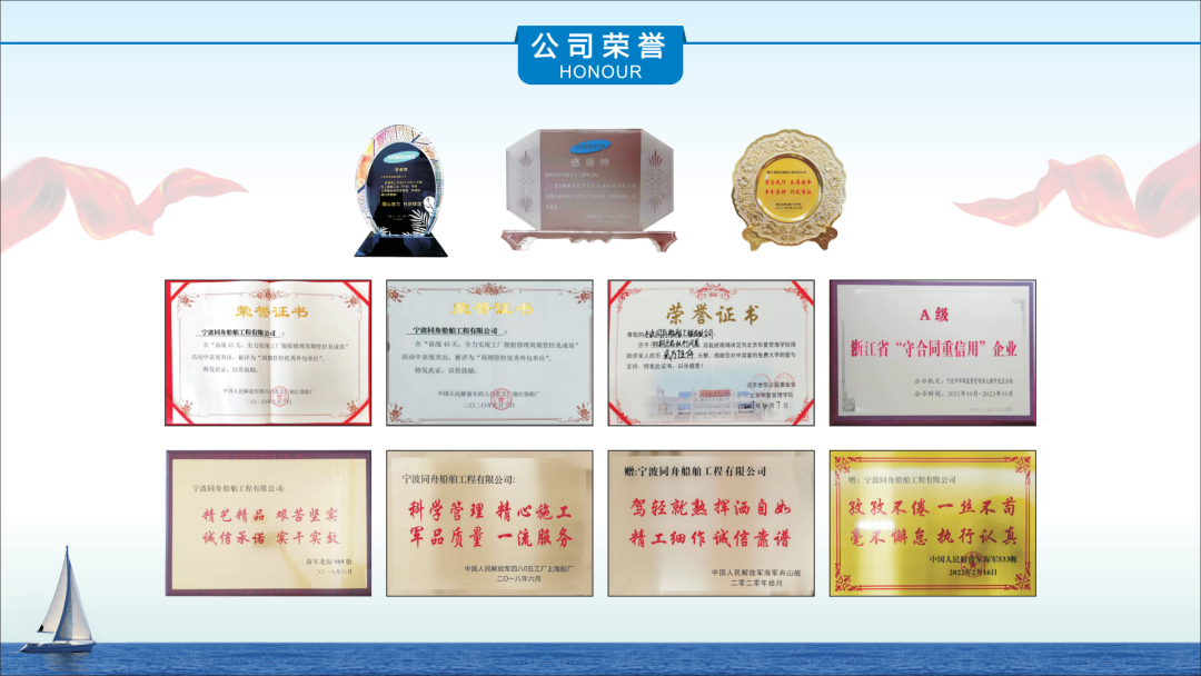 宁波同舟船舶工程有限公司创立于2008年,历经17年行业深耕,已发展为国内一家大型船舶工程综合服务商。公司业务涵盖军品与民品船舶修造、船舶防腐涂装、管系安装、船舶室内装潢、分段制作及钢结构加工等多个领域。 坚实足迹,硕果累累 * 累计服务合作客户20余家。 * 参与新造各类船舶925艘,修理船舶556艘。 * 修造船舶总吨位突破4000万吨,为中国修造船行业的蓬勃发展做出了重要贡献。 携手业界,共筑未来 同舟船舶始终秉持开放共赢的合作理念,与国内外众多知名企业建立了长期稳固的战略协作关系,构建了覆盖全球的优质合作网络,合作伙伴包括国营明江船厂、韩国三星重工、日本常石集团、金海重工、芜湖造船厂、舟山长宏国际、扬州中远海运、象山新乐、中国人民解放军四八〇五集团(镇江五峰山船厂、上海申佳船厂、象山4819船厂)、广州黄埔文冲船厂、上海外高桥造船有限公司、青岛北海重工、长兴岛东鼎钢结构有限公司、宁波波威重工、中国船级社实业有限公司青岛分公司等。