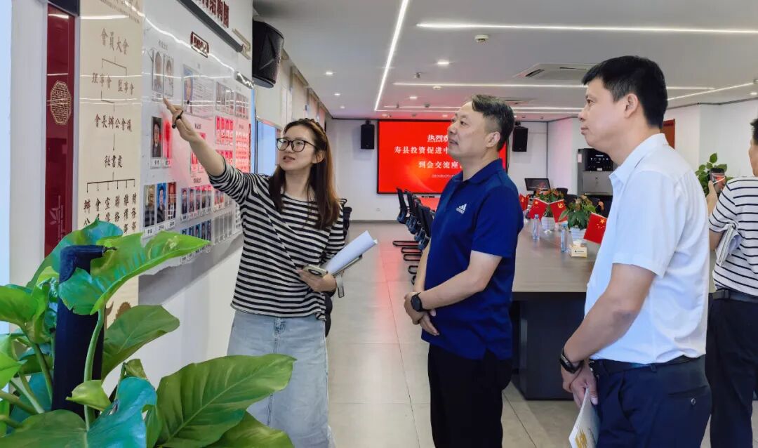 在闻玮玮的引导下鲍广东一行参观了我会的荣誉墙、徽商文化墙、党建阵地。