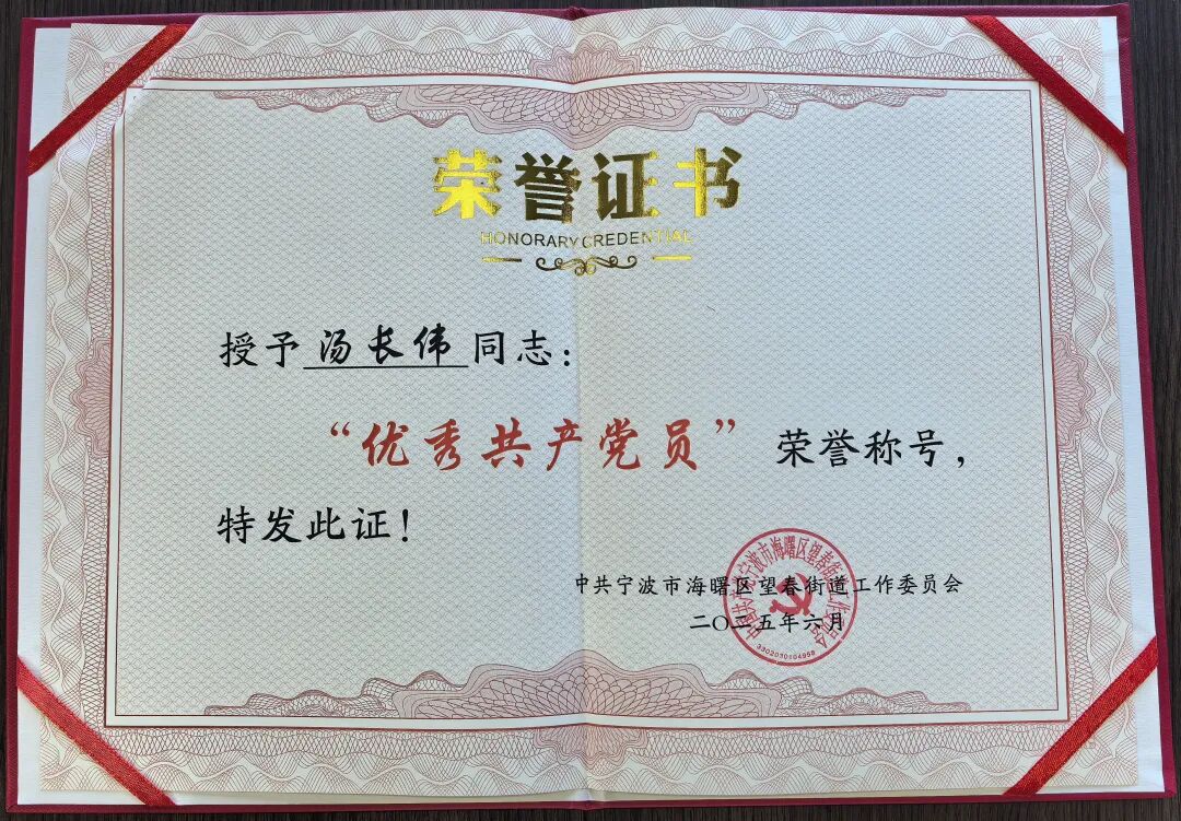 热烈祝贺我会党支部书记汤长伟同志被授予望春街道“优秀共产党员”荣誉称号