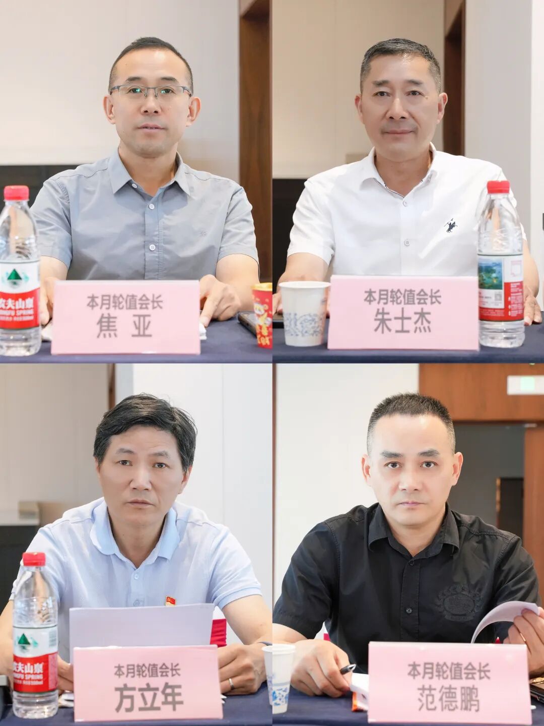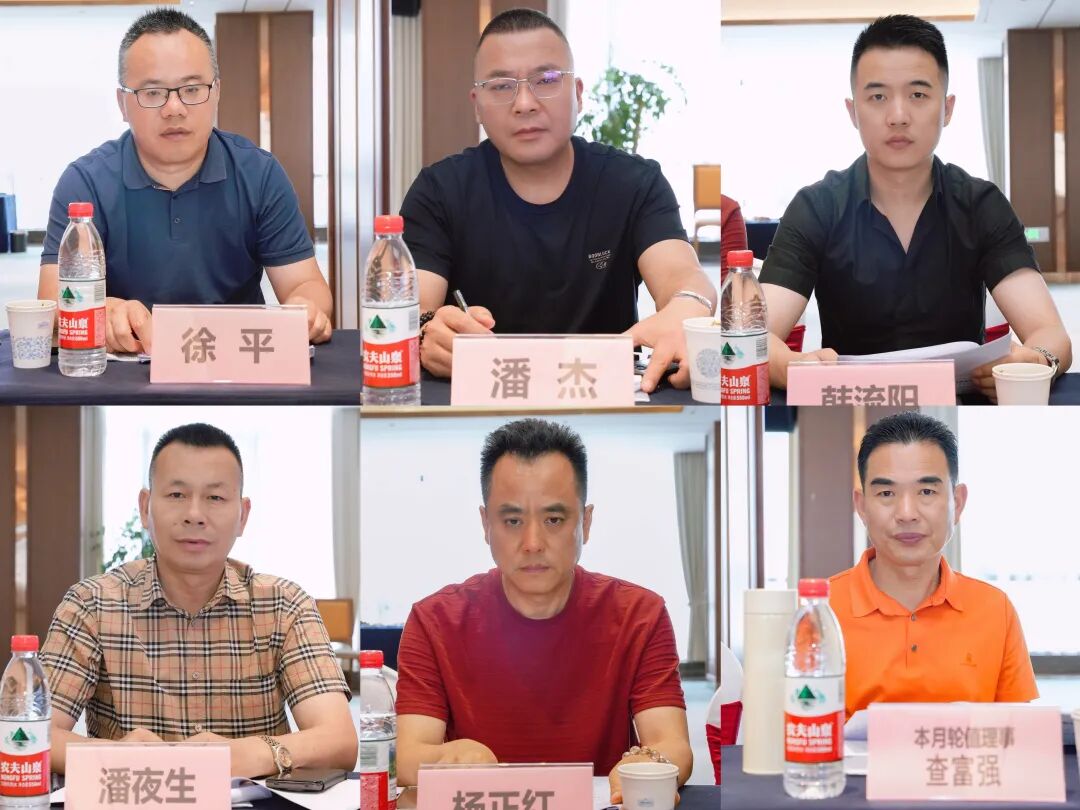 发布时间:2025-06-26 点击量:546月26日下午,宁波市安徽商会四届五次理事会议在宁波奉化方桥开元名庭大酒店二楼名庭厅成功召开。我会会长、宁波长阳科技股份有限公司董事长金亚东,党支部书记、执行会长汤长伟,常务副会长陶锦珊、焦亚(本月轮值会长)、黎晖、刘培群、韩振华、朱士杰(本月轮值会长)、常务副会长兼秘书长朱云,副会长方立年(本月轮值会长)、蔡志民、单洪洋、范德鹏(本月轮值会长)、葛俊杰、陶荣巧、李付金、张从圣、胡潇茹、理事51人参加了此次会议。监事长丁熊秀、监事张德权、副秘书长兼办公室主任闻玮玮、执行会长姚成志企业代表列席会议。