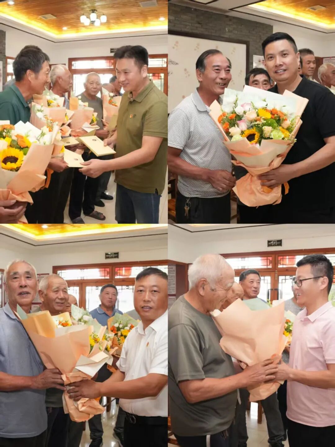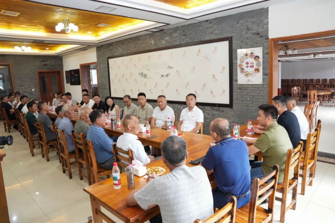 党支部书记、执行会长汤长伟代表商会讲话。他表示,在“八一”建军节即将到来之际,商会特意准备了慰问金、30 袋大米、15 件博洋家纺床品四件套及精心挑选的鲜花,这些物品或许并不贵重,但每一份都承载着宁波市安徽商会全体会员对各位老兵沉甸甸的敬意,饱含着大家发自内心的关怀与牵挂。期待以此次党建共建为纽带,进一步拉近商会与三十六湾村的距离,推动双方在资源互通、优势互补上不断协作,为后续结对帮扶工作的扎实开展筑牢根基,共同为乡村振兴添砖加瓦。